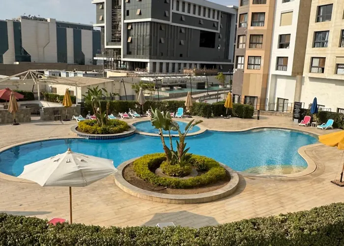 El Elegant One Bedroom Hotel Appartment Porto New Cairo Pool Access, situado a tan solo 1 km de Meeting Point Mall en el barrio Nuevo Cairo, dispone de terapia de spa y zona de juegos. Este apartamento de 100 m², con una terraza con vistas a la ciudad, está situado cerca del Gravity Code.